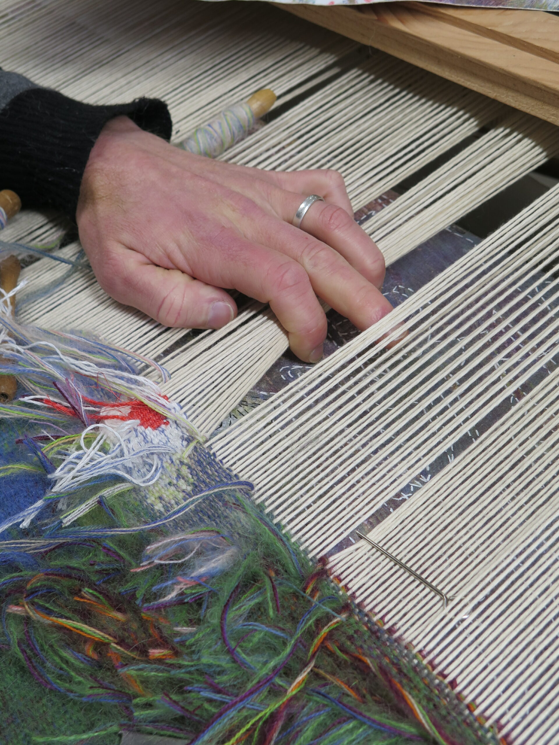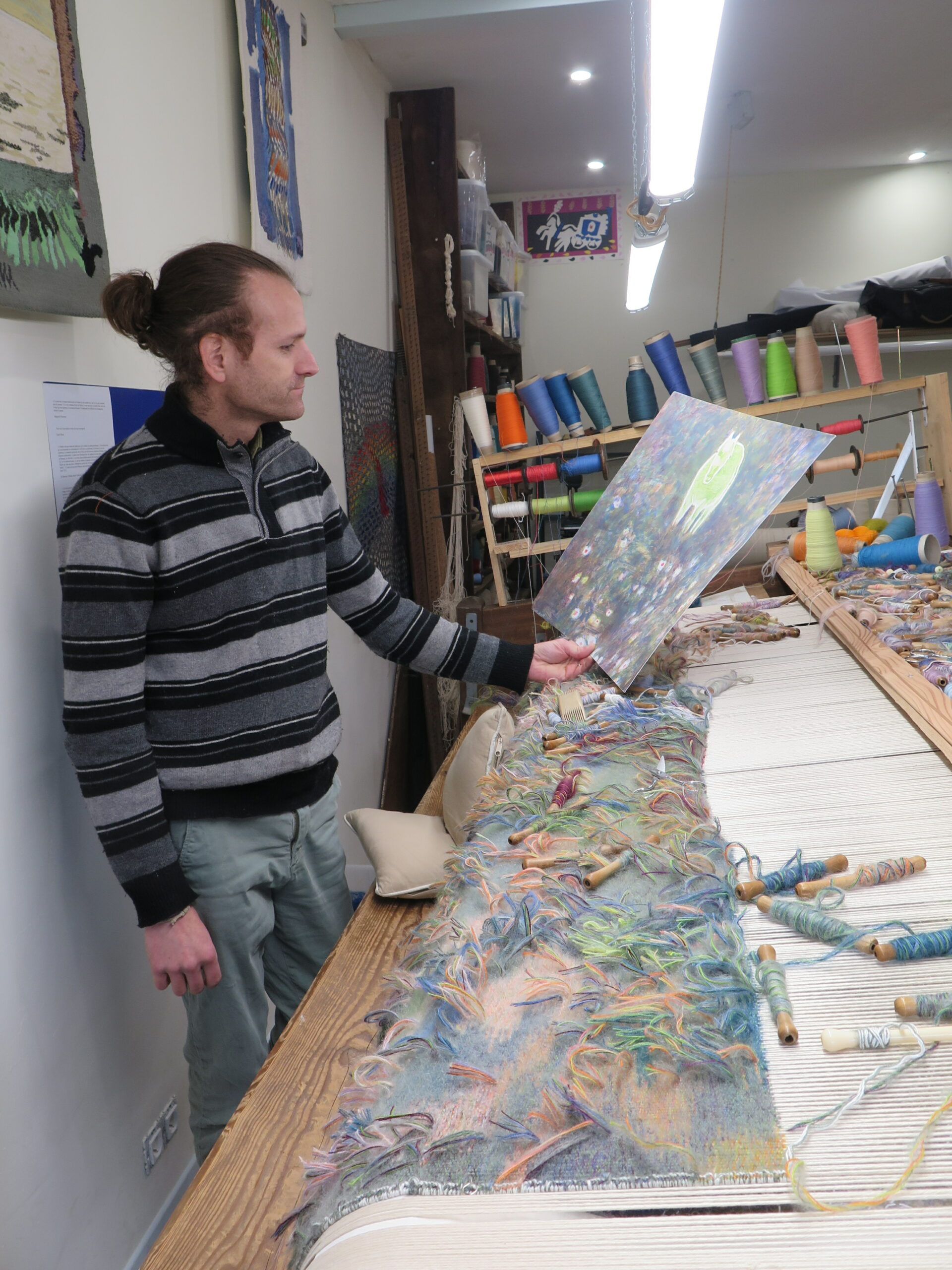 Après quelques semaines de travail, le carton a rejoint l’atelier de Franck pour le tissage (tombée de métier prévue en février 2026).