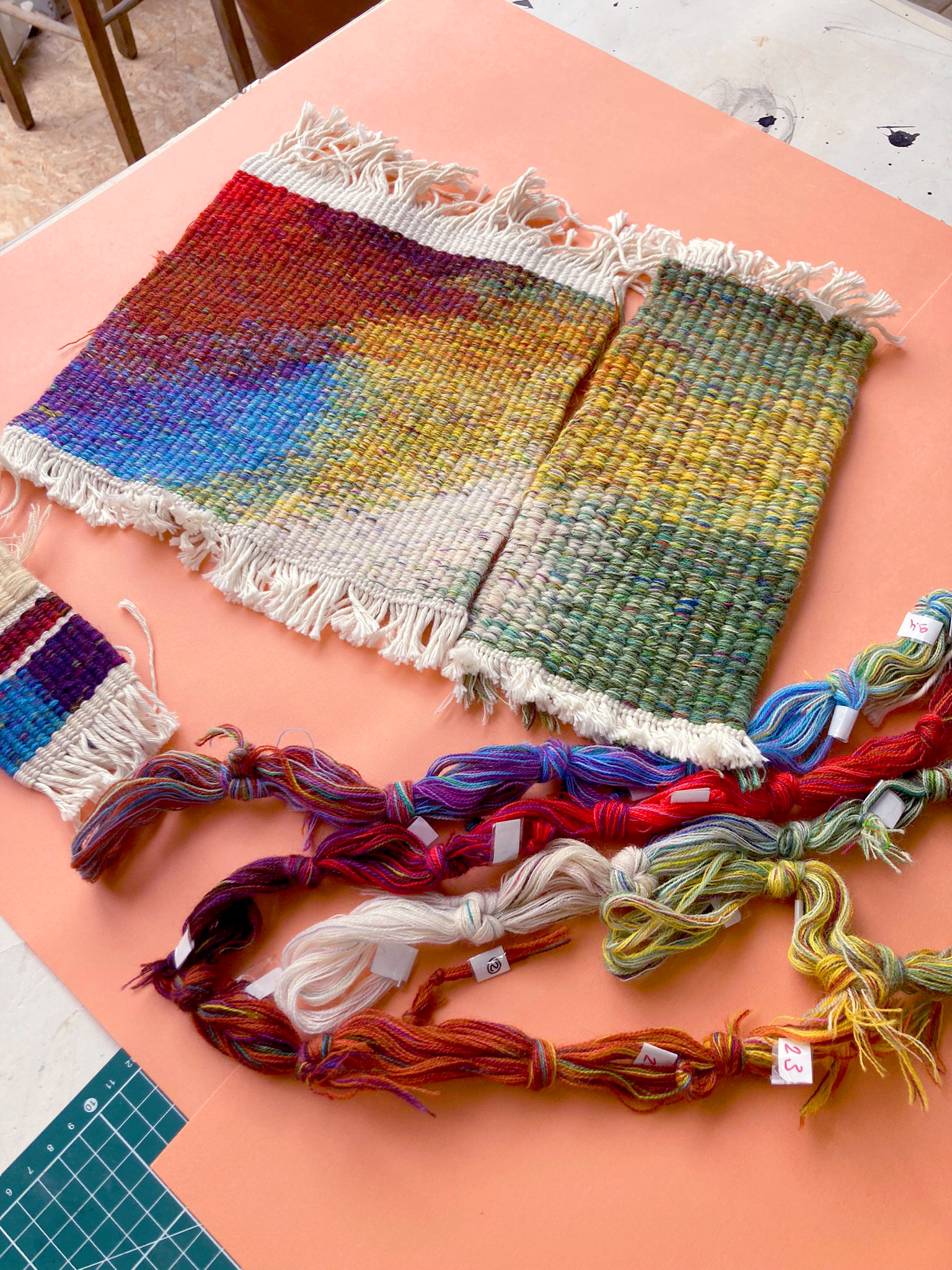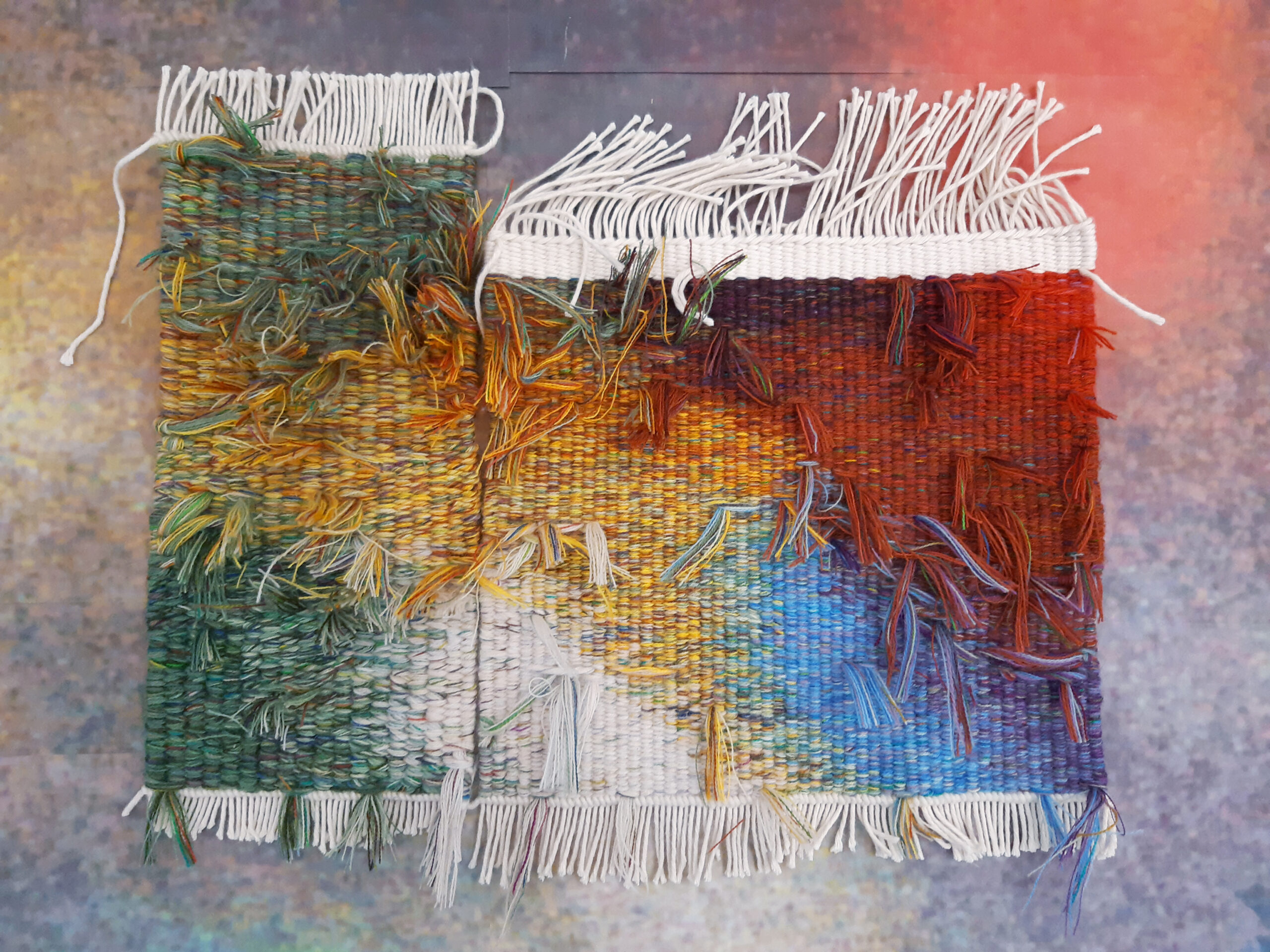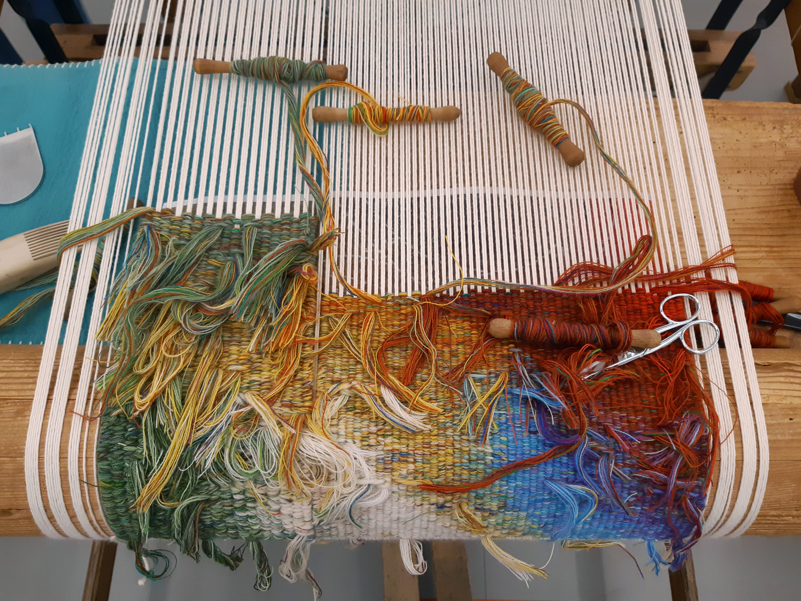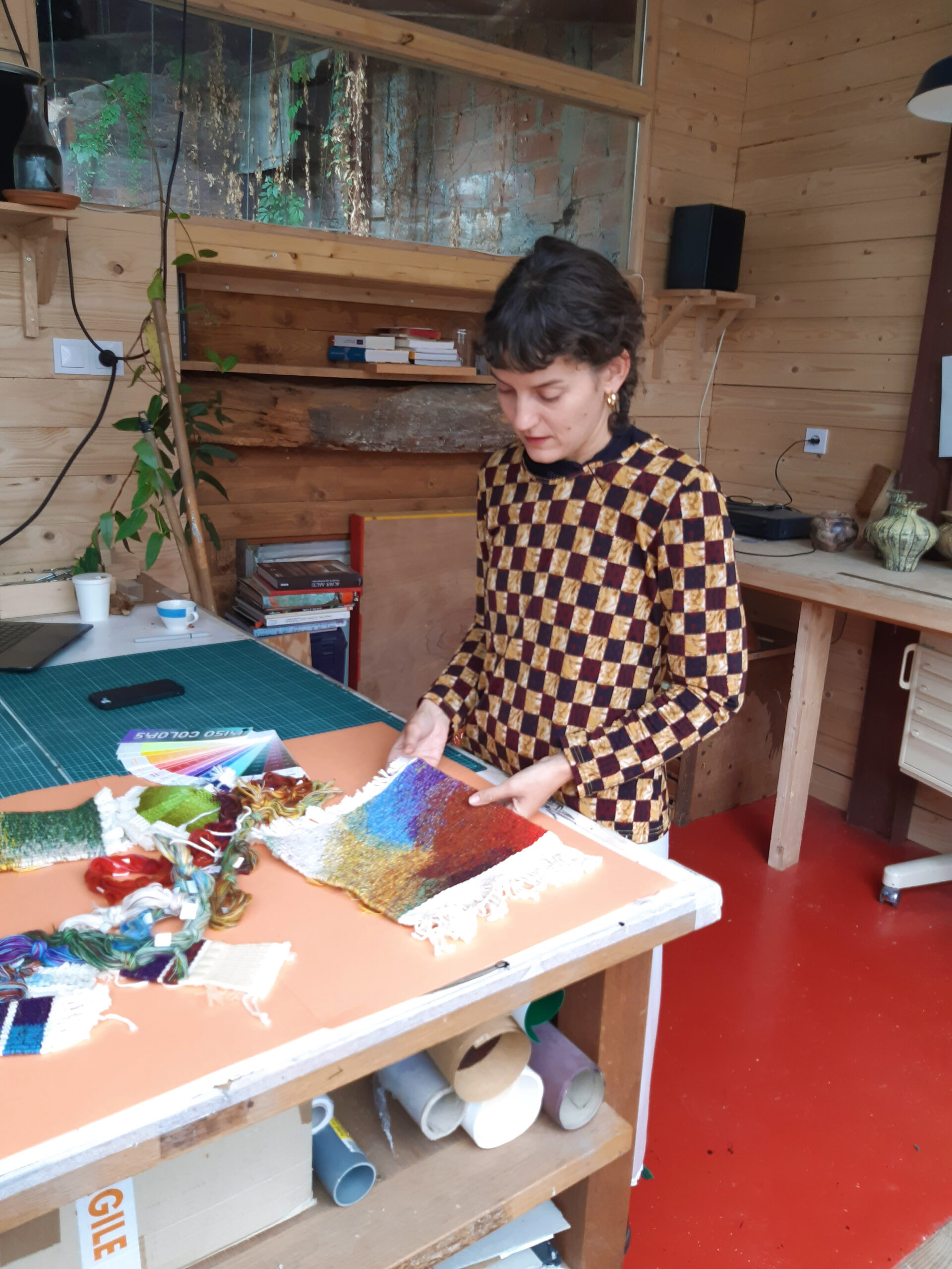 Lors de mon premier échange avec l’artiste en octobre 2023, elle m’a expliqué que cette image était représentative de sa pratique et a validé ce choix pour mon projet de fin d’étude : l’interprétation d’une œuvre en tapisserie d’Aubusson et le tissage de deux échantillons.