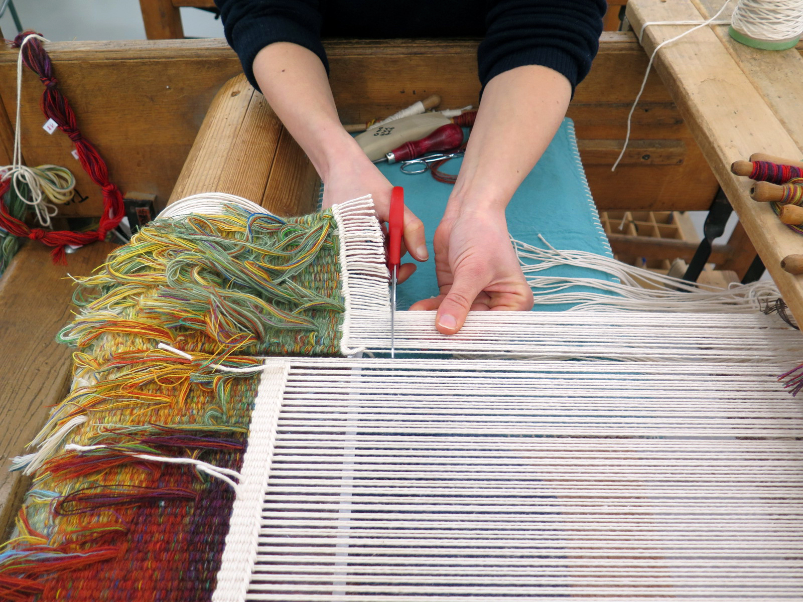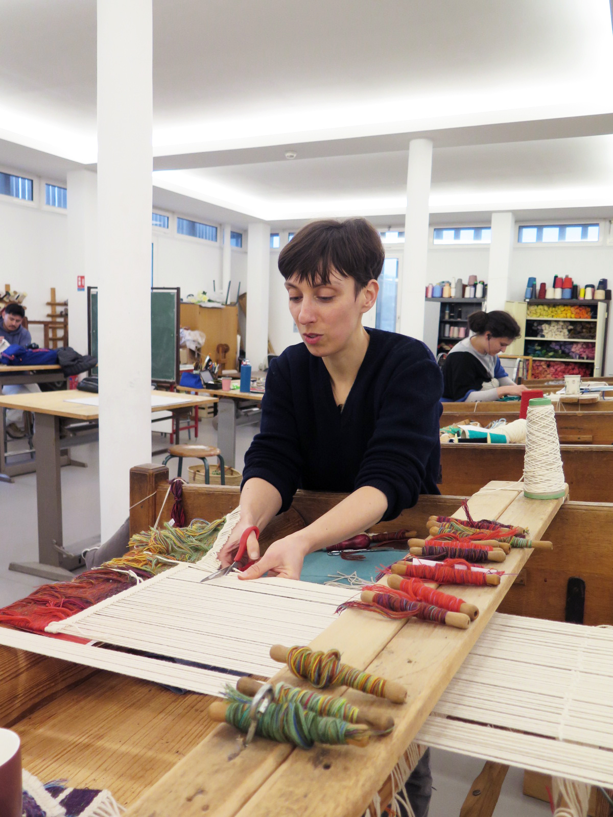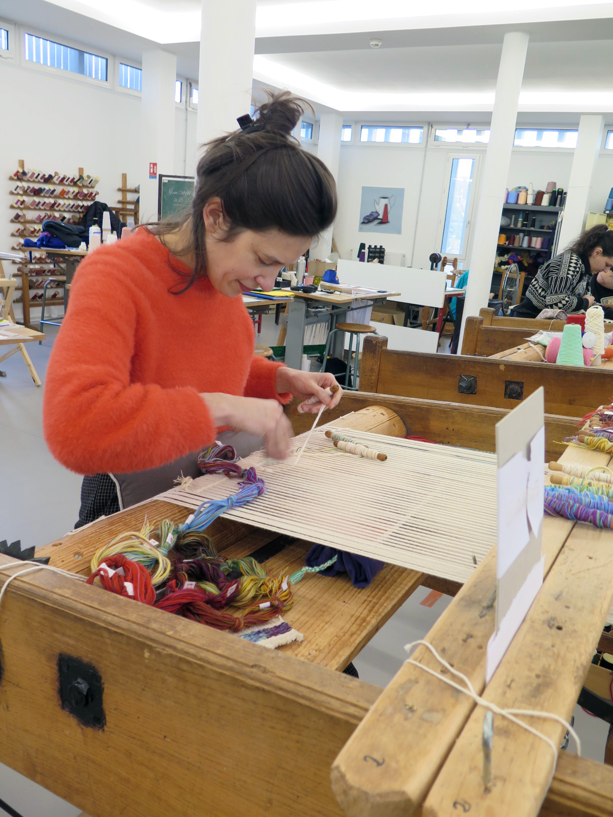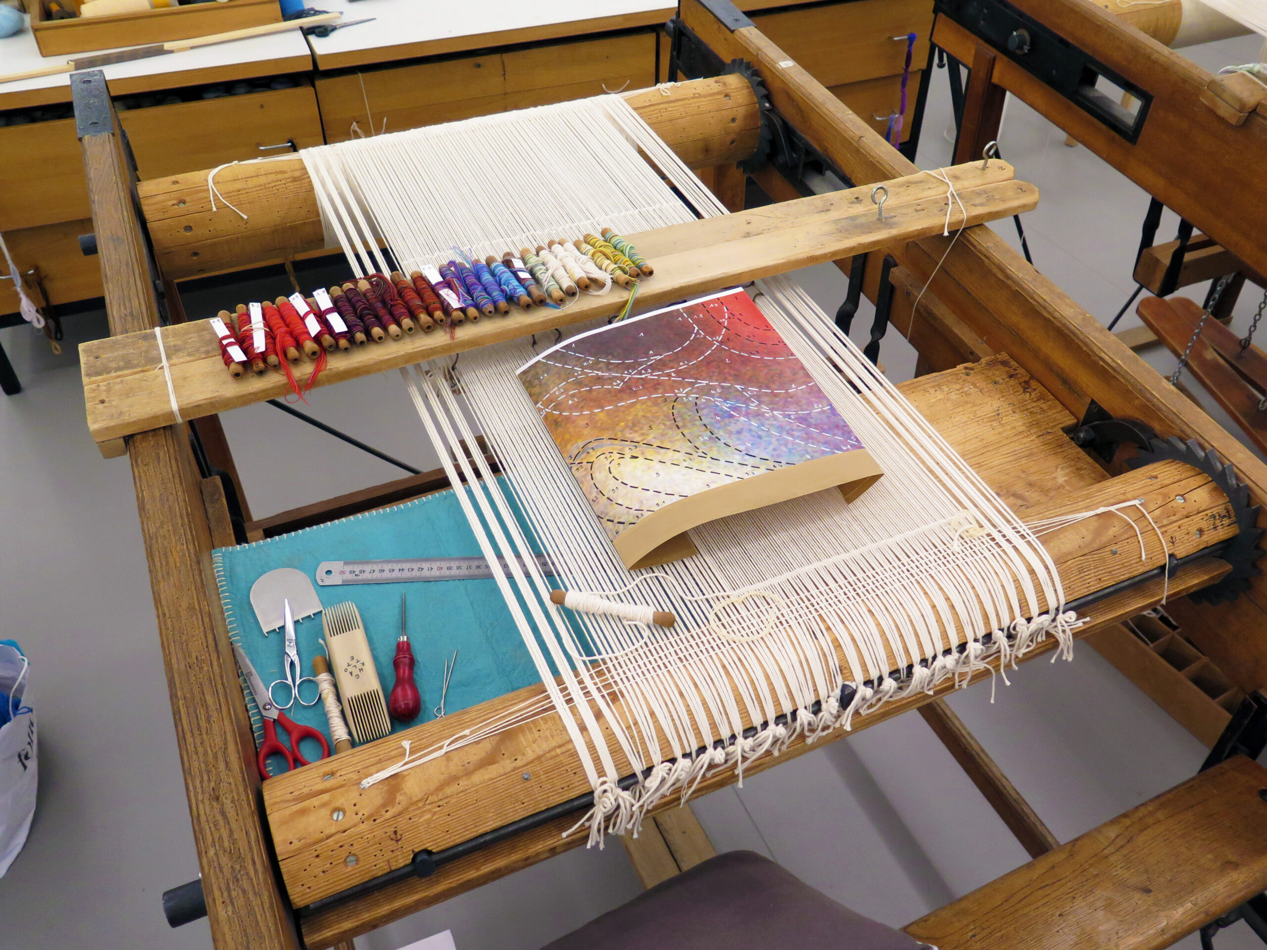 Lors de mon premier échange avec l’artiste en octobre 2023, elle m’a expliqué que cette image était représentative de sa pratique et a validé ce choix pour mon projet de fin d’étude : l’interprétation d’une œuvre en tapisserie d’Aubusson et le tissage de deux échantillons.
